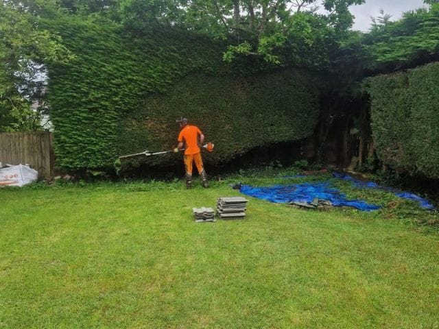 Our team in Bolton transformed this overgrown garden with precision hedge trimming and full garden clearance. Using professional long-reach cutters, the team reduced the massive hedge, shaped it neatly, and cleared all clippings from the site—leaving a clean, tidy lawn ready for immediate use by our satisfied local customer.